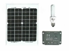 Kit fotovoltaico 20W comprende pannello regolatore di carica e 2 lampade 12 V. Funzione Giorno-Notte. ON/OFF Programmabile