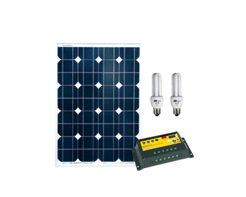 Kit fotovoltaico 55W comprende pannello regolatore di carica e 2 lampade 12 V. Funzione Giorno-Notte. ON/OFF Programmabile