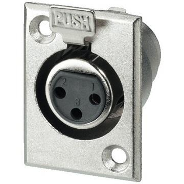 Connettori XRL da pannello, 3 poli con contatti dorati, versione di metallo, argento, femmina.
