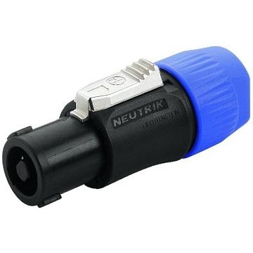 Serie di connettori Speakon per il collegamento professionale di altoparlanti. Versione robusta, con blocco, protetta contro il contatto accidentale, passacavi a morsetto.