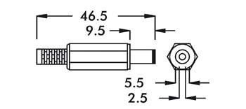 Spina DC ø5,5-2,5mm, corpo lungo 9,5mm con guidacavo.