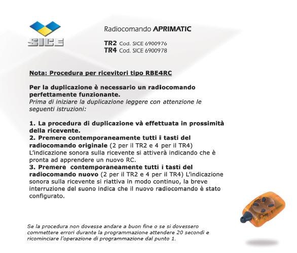 RADIOCOMANDO ORIGINALE APRIMATIC TR4 433,92MHZ ROLLING CODE TR4