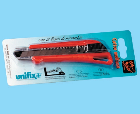 Lama speciale con larghezza di 18 mm e con spessore 0,50 mm. Lama in acciaio superduro di altissima qualità per un'affilatura di lunga durata. Ottima per cartone, tappezzeria, ecc.