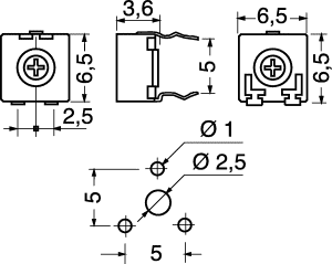 Trimmer 10 Kohm a strato di carbone ACP 6x6 montaggio orizzontale regolazione verticale