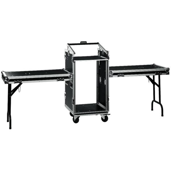 Case professionale su rulli per apparecchi di 482 mm con 2 tavoli integrati