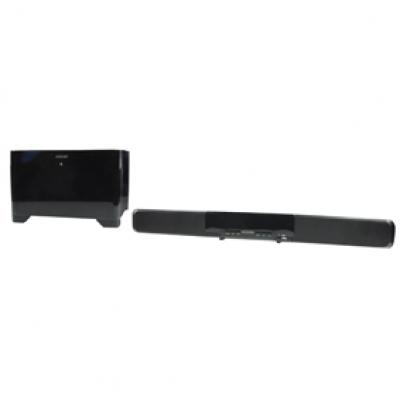 Con questo potente soundbar migliorate considerevolmente l`audio del vostro TV LCD o plasma. Il mobiletto plastico è ben rifinito e si adatta a qualsiasi interno. La tecnologia surround valorizza al meglio l`audio del TV, DVD o MP3. Il display di facile lettura ed il pratico telecomando permettono di controllalo molto facilmente. Comprende un subwoofer wireless che si posiziona con estrema facilità ovunque desiderate.
