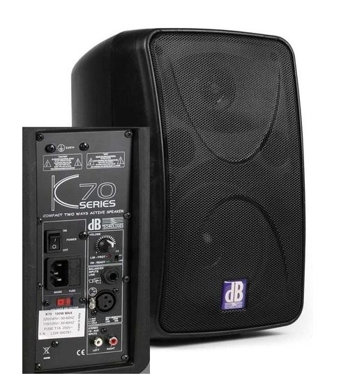 Il diffusore K70 è equipaggiato con un woofer da 5” ed un dome tweeter. L’amplificatore integrato eroga 50W/RMS ed è dotato di un limiter audio per ottenere la massima affidabilità.