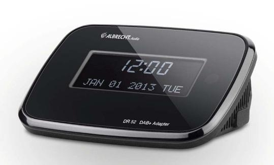 Radio + DAB Albrecht DR 52 Adattaore DAB radio Nero- Riceve radio digitale (DAB+ /DAB) e radio FM - Uscita RCA per un facile collegamento all'impianto stereo o modulo Hi-Fi - Visualizzazione di informazioni aggiuntive (artista, album, ecc.) - Funzione sveglia con due orari - Visualizzazione ora e data