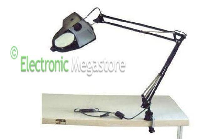 LAMPADA CON LENTE (n.b. la lampadina non è contenuta nella confezione) Lente 3 diottrie Diametro lente: 110 mm Colore: nero Estensione del braccio: 91 cm Potenza lampada: 40W Alimentazione: 230V AC Attacco: a morsetto Dimensioni scatola: 190 x 650 x 95 mm